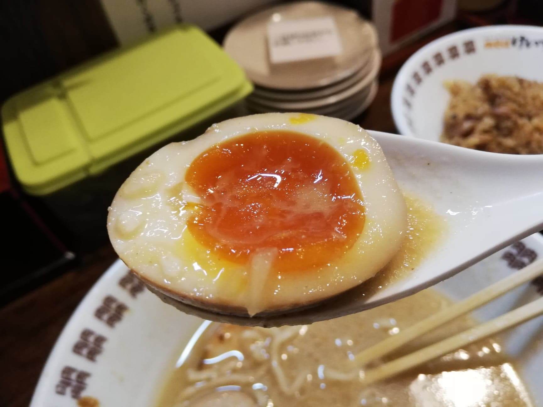 キレイなオレンジ色した煮卵!見た目からしてトロントロンですねえ。