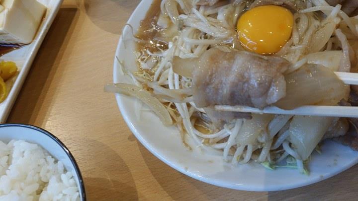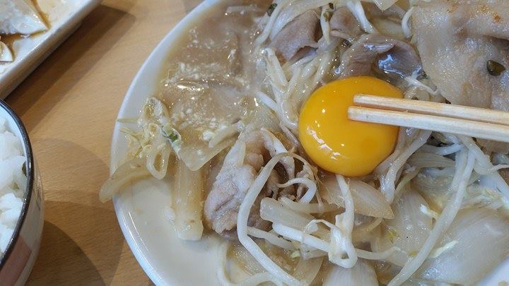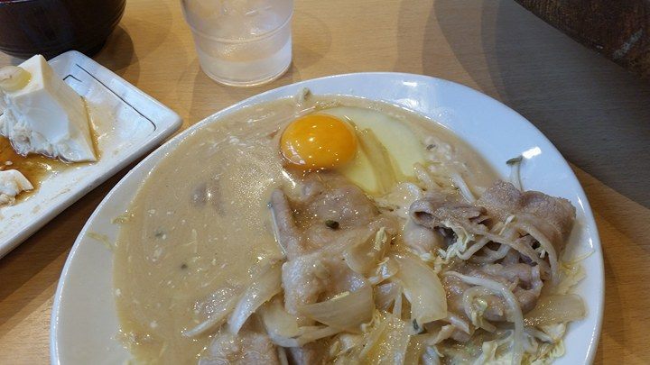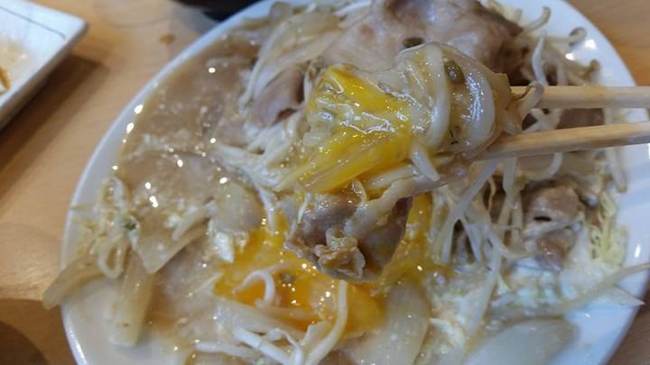 大正解!!!!残った豚肉に卵を、ドボン。そしてそこにご飯を投入。このスタイルはヤメラレナイ。汁物だと特に病みつきになります。