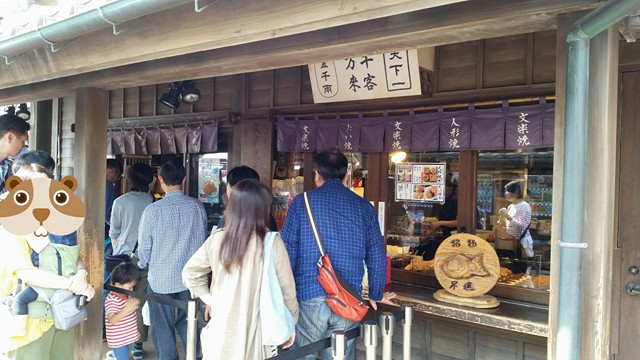 入ってすぐに行列があるのは『文楽焼本舗』さん。たい焼き屋や人形焼きを販売していますね。