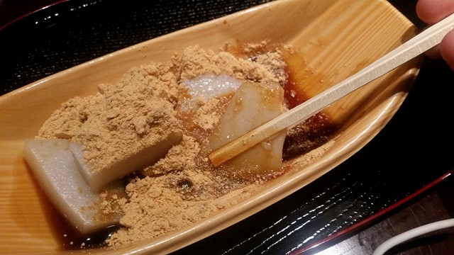 ああああああああ!!きなこと糖蜜が合わさりマグマのようなドロドロさ加減に変化ああああああ!!『あっさり甘さのきなこ』と『とろーり濃密な甘さの糖蜜』。この二つが合わさるとどうしてこんなに甘美な味わいになるのでしょうか……?