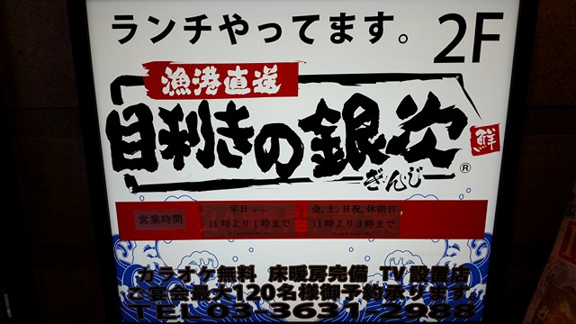 目利きの銀次で居酒屋うなぎランチを食べよう!