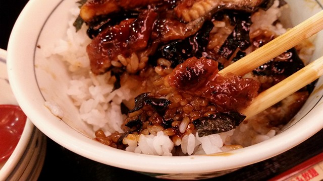 ダシの効いたうな丼を、お茶漬けのようにサラサラサラ〜。うなぎのタレが染み出しより最高のスープへと変貌を遂げます!