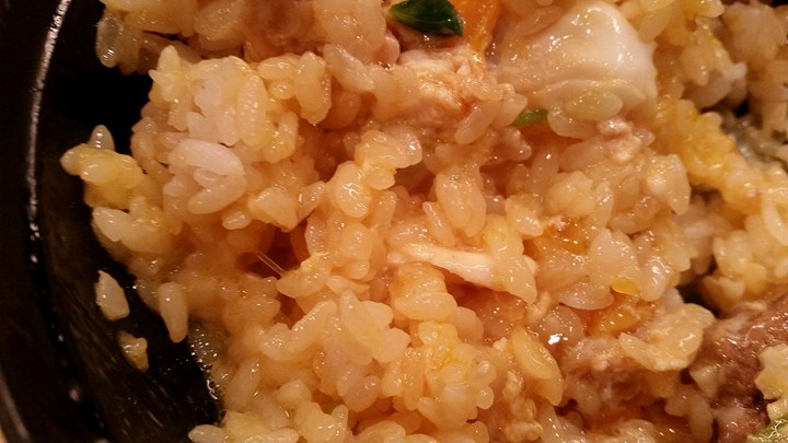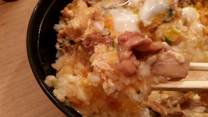 モツと鶏肉、二種類の異なる食感のお肉を存分に味わえて、それをとろとろの卵がサポート。ダシが全体に最後の仕上げを加えている。