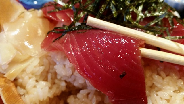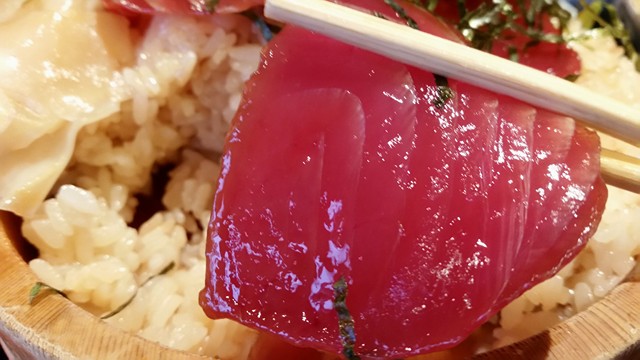 マグロの光沢が尋常じゃない。マジで表面がツヤッツヤ。光が反射して輝いております。これはすごいなあ……。