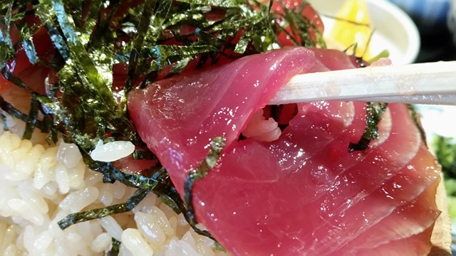 このように、マグロの筋に沿ってキレイに切れるんですよね。口の中ではこれが顕著。
