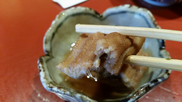 ガンモも口をしっかり閉じなければ、汁の溢れに注意。食感もかなり柔らか。こりゃあうんまい!