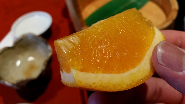 この他にも、クリームかよ!ってくらいにとろけるイカの刺身、ふわふわ茶碗蒸し、さらにお口直しのさっぱりミカンと、非常に豪勢な顔ぶれが並びます。