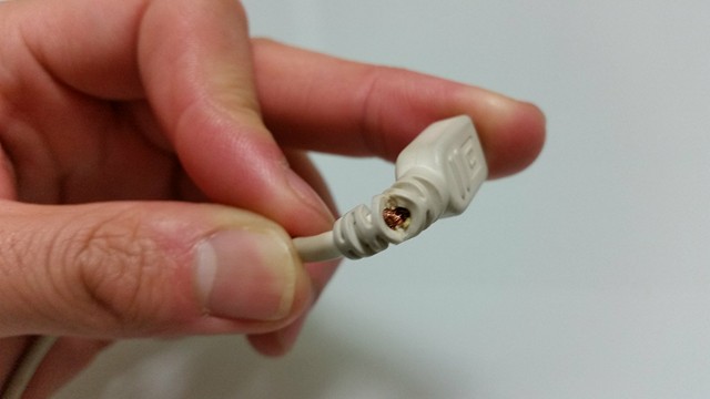 実物は捨ててしまったのですが、同じようにコードがむき出しになった充電器があったので、これでイメージをば。