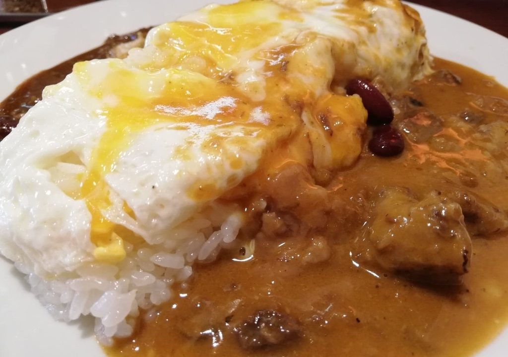 トロトロで美しい卵を境に、コク深そうな2種類のルーが均等に添えられています!