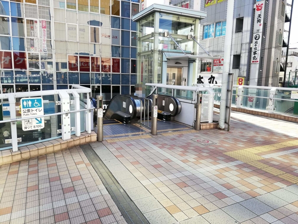 ①北千住駅西口を出て十字路を左に曲がり、エスカレーターで下へ行きます。