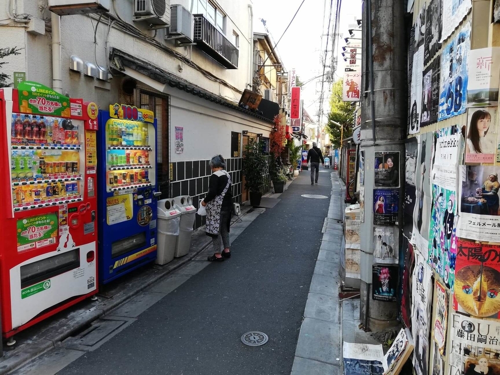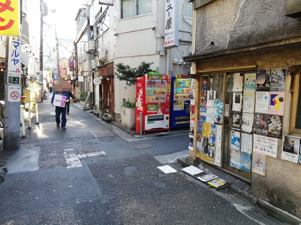 ③『かぶら屋』などの居酒屋を確認しながら進むと、ポスターがたくさん貼ってる古い建物が見えてきます。