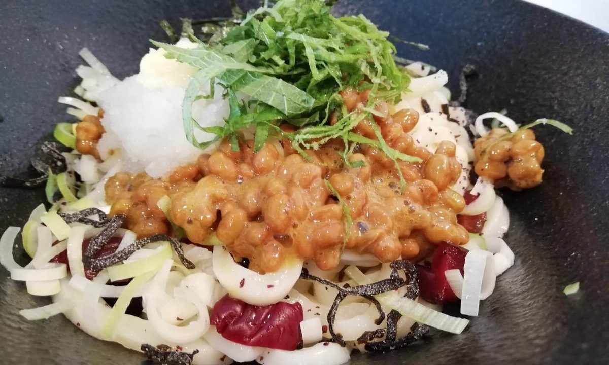 ネギやおろしとの相性が抜群すぎますね。納豆と共に、しっかりと麺に絡みつきます。