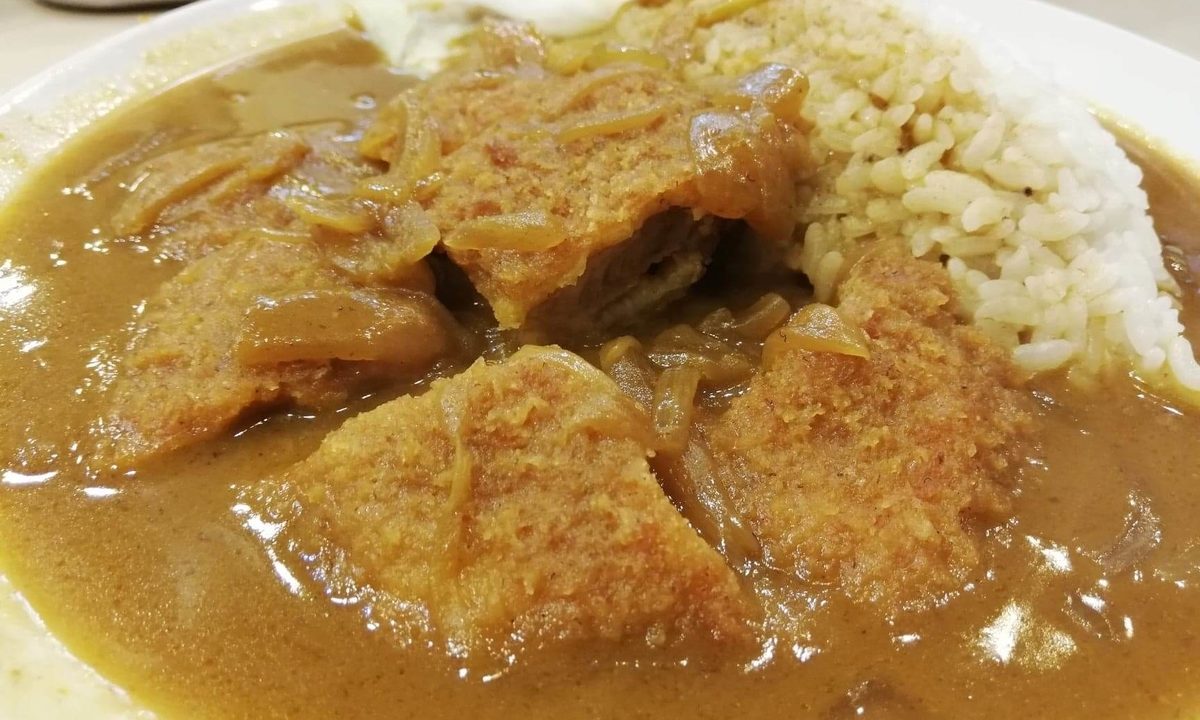 カツはかなり柔らかい!ルーがしっかり染み込み、噛むたびに油と共にじゅわあっとあふれ出します。