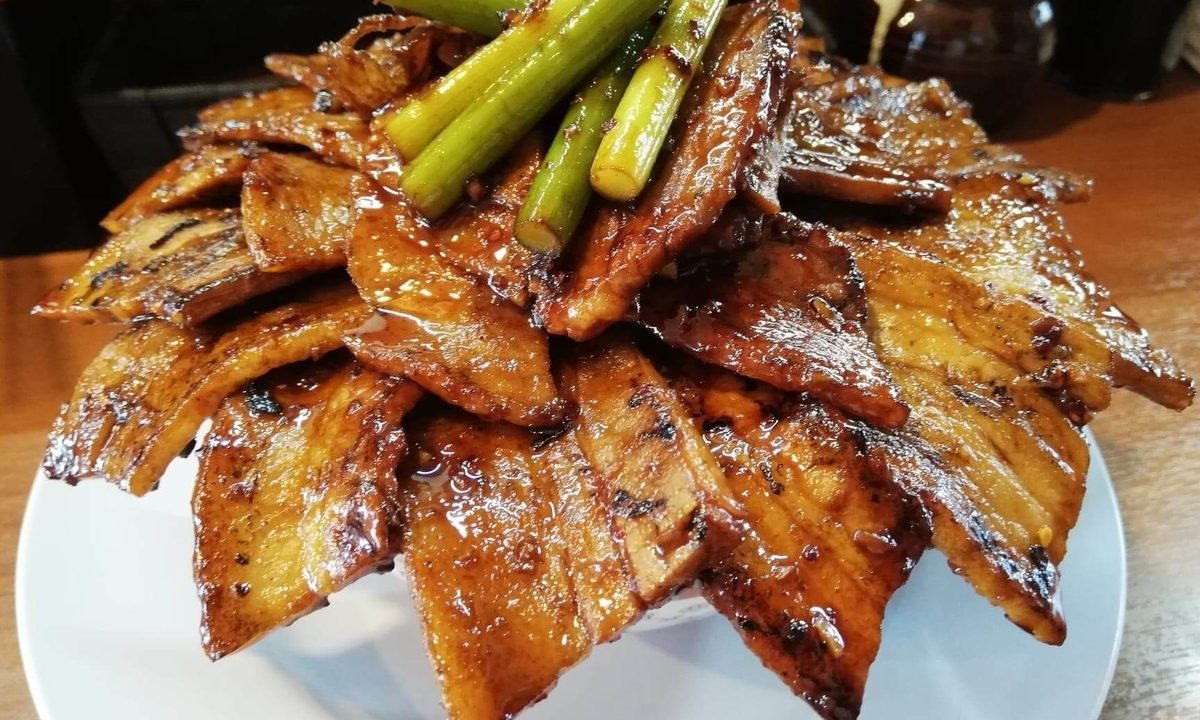 360°どこを見渡しても肉しか見えない。お焦げの香ばしさに混ざりながら、強めなガーリックの風味!