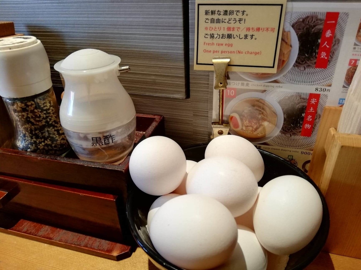高田馬場『つけ蕎麦安土』の生卵の写真