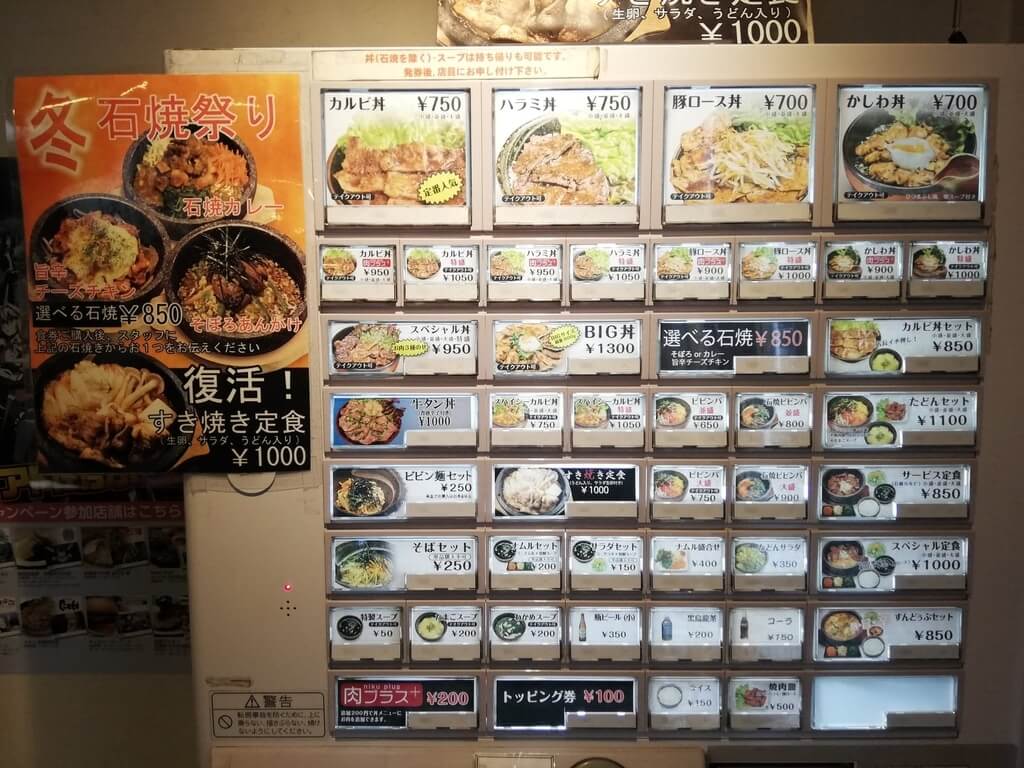 焼肉丼たどんの券売機『1,300円はたけーよ!』という方は、他の丼メニューを注文してそれのライス量を変更しましょう!一部除いて『小盛・並盛・大盛・特盛』を無料で選べます!