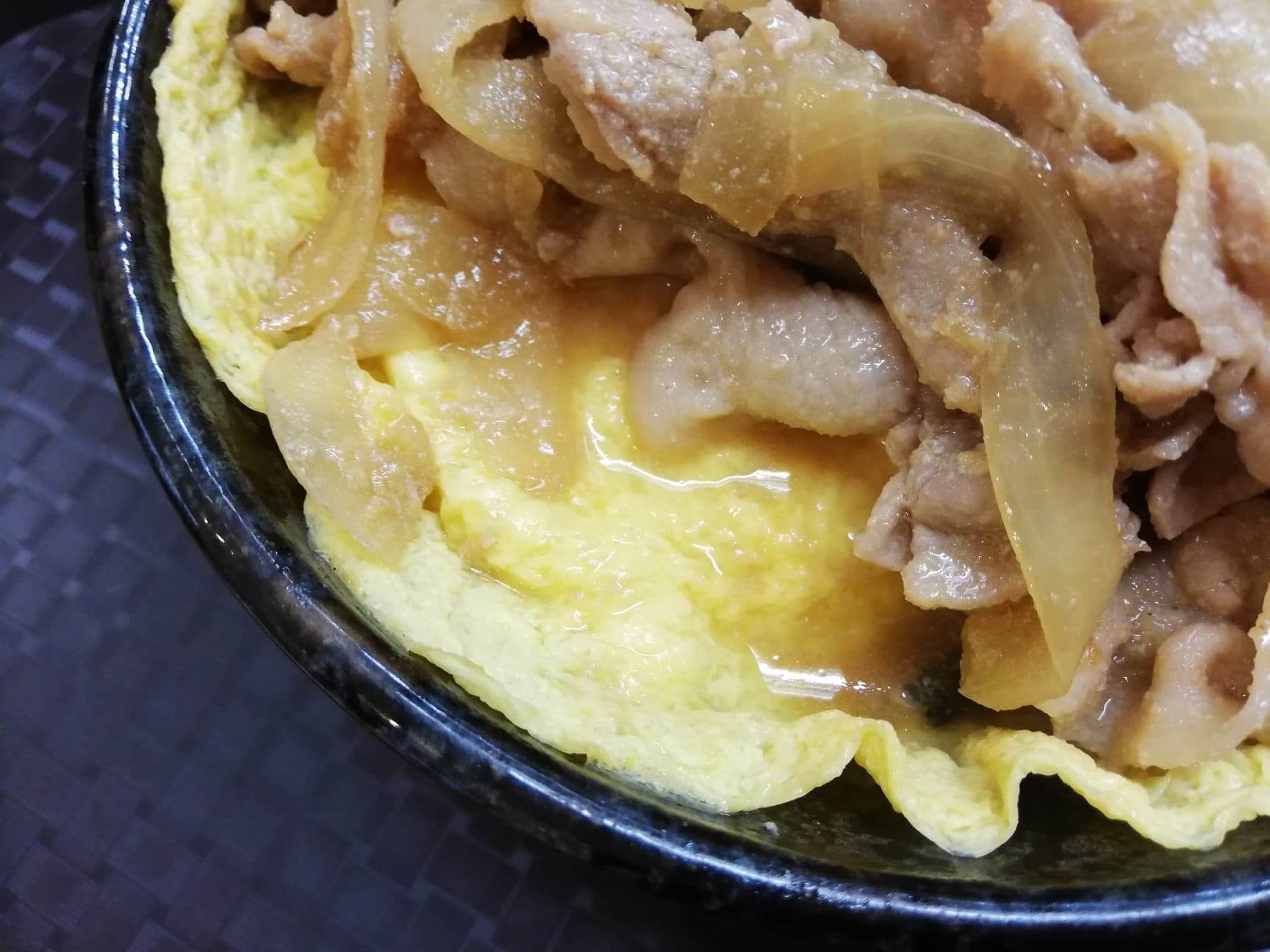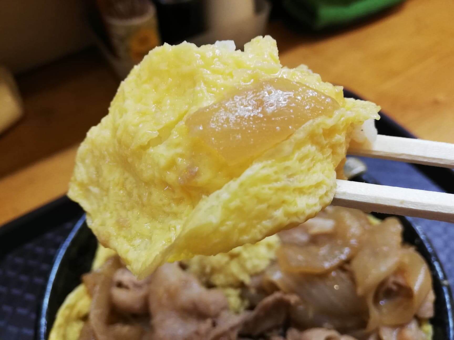 江古田『笑姜や』の、理想の生姜焼き丼の卵の写真卵はフワフワな食感!