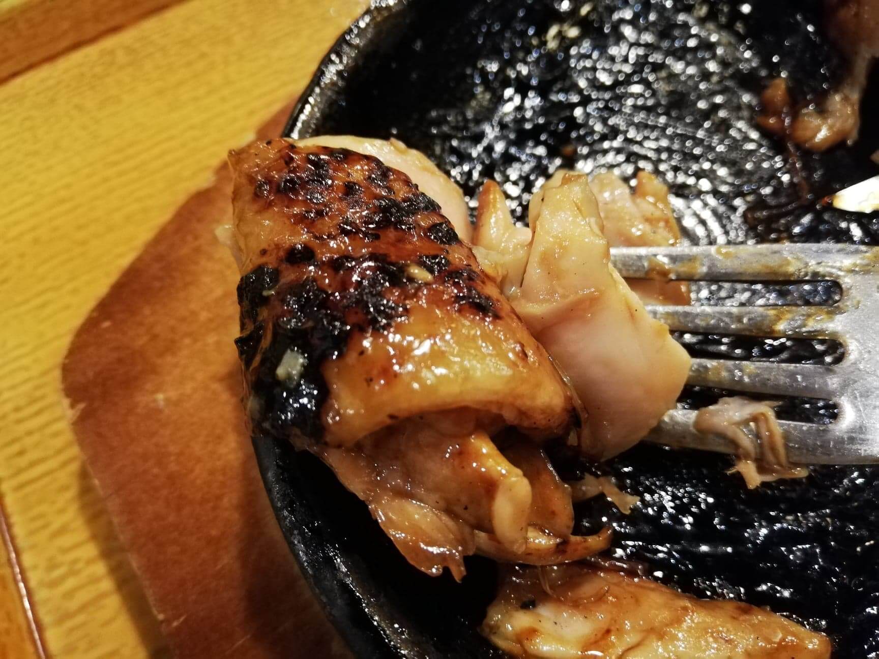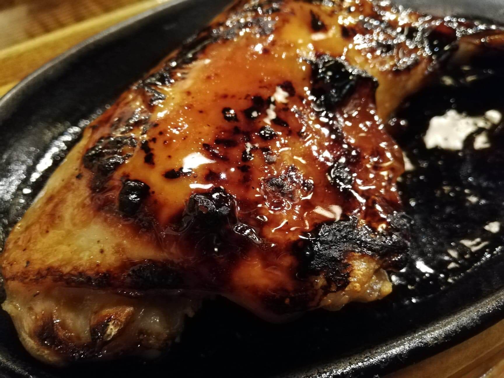 皮はパリパリで肉厚チキンがたっぷりと骨に付いています。