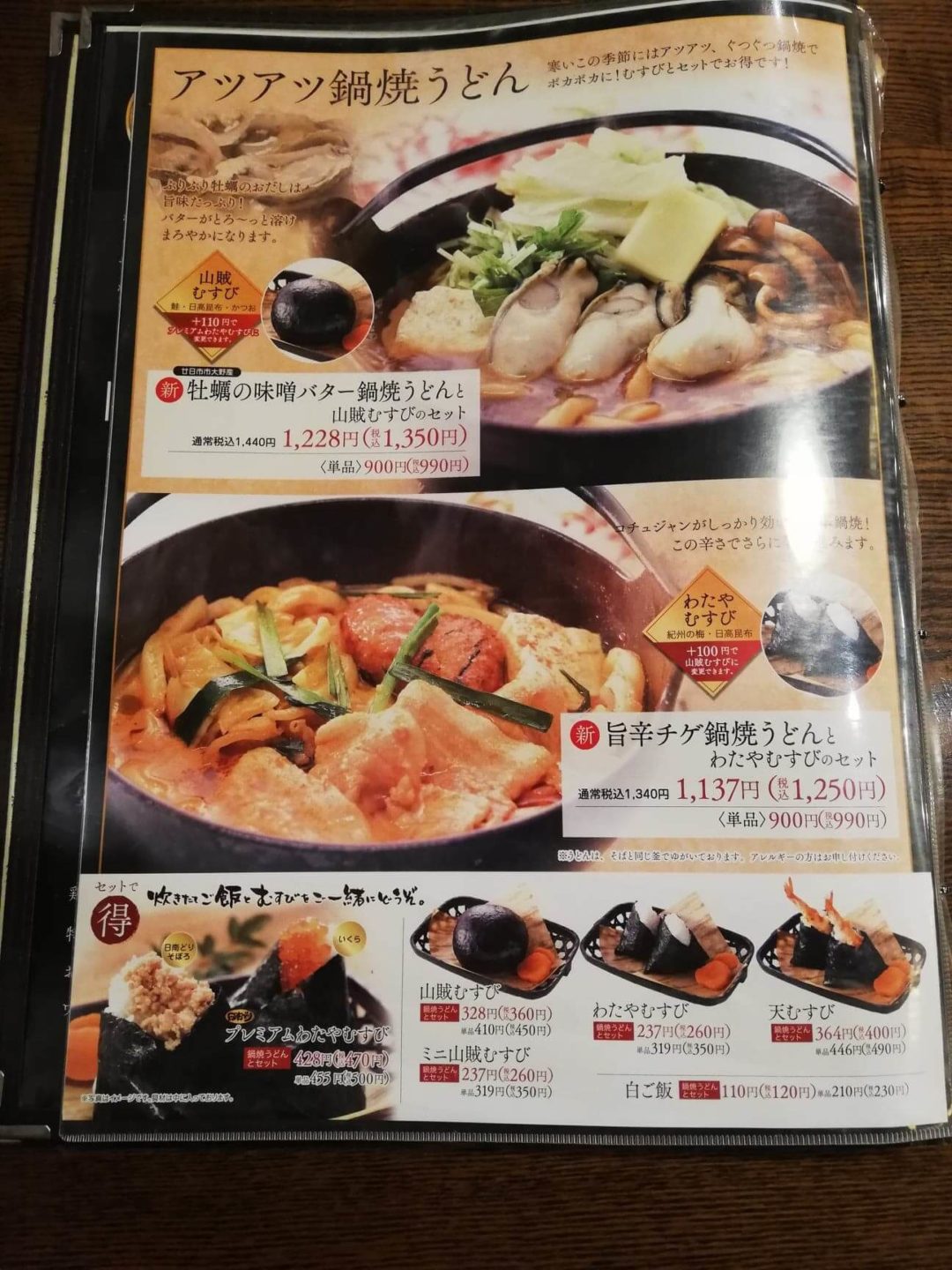 ここでは『牡蠣の味噌バター鍋焼うどんと山賊むすびのセット1,350円+山賊焼き単品のタレ味910円』をチョイス!