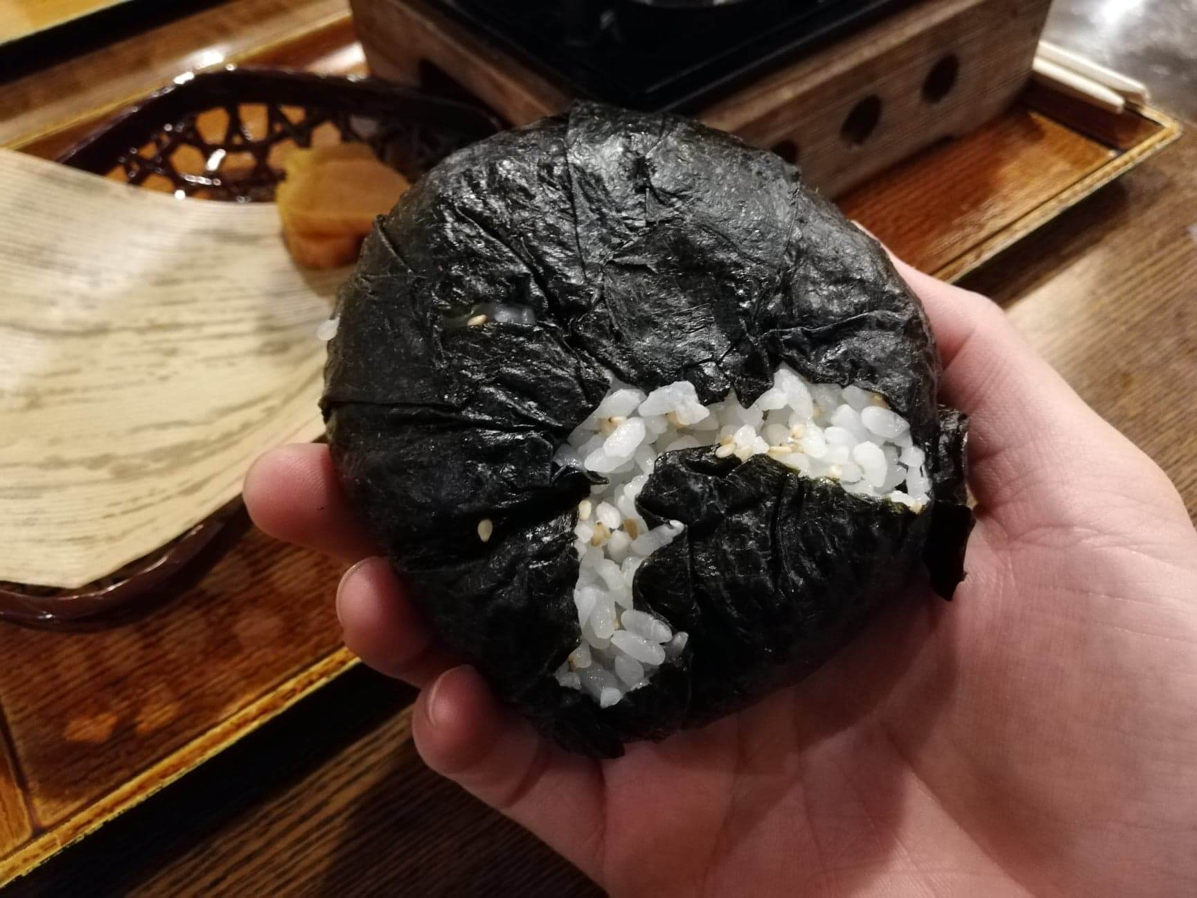 山賊むすび、というからにはおむすびなんでしょうが、なんか爆弾にしか見えない。ここにお米という炭水化物がぎゅっと凝縮されてるなんて悪いおむすびです……。