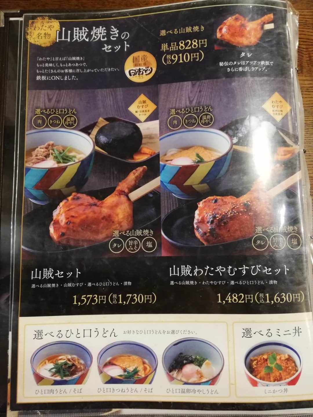 他にもいろんなメニューがありますよ!わたや名物の山賊焼きという骨つき肉まであります!