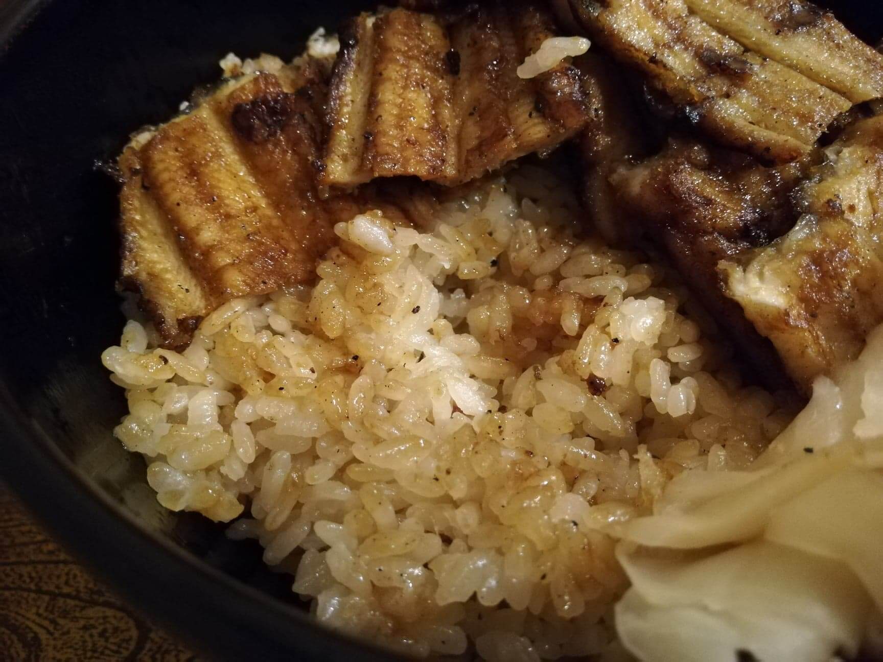広島県の宮島『あなごめしうえの』のライスの写真 広島県の宮島『あなごめしうえの』のライスとあなごの写真ライスもあなごも、どこを食べても香ばしい。全体にしっかり旨味と火が染み渡っています。