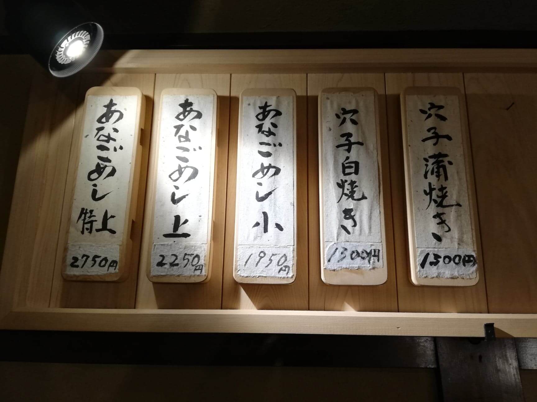 広島県の宮島『あなごめしうえの』のメニュー表写真① 広島県の宮島『あなごめしうえの』のメニュー表写真② 広島県の宮島『あなごめしうえの』のメニュー表写真③メニューは壁掛けスタイル。ここら辺も趣があります。