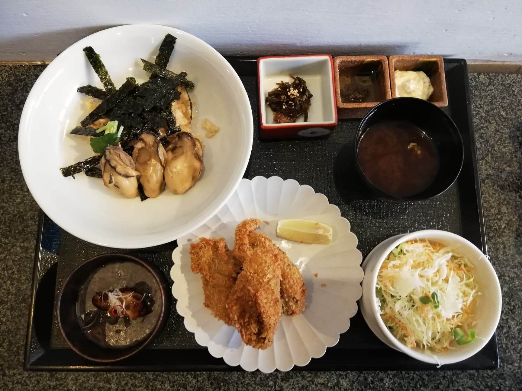 お次は『牡蠣屋定食』!ぎっしりと牡蠣料理が詰まった、宝石箱のようなお盆ですなあ。