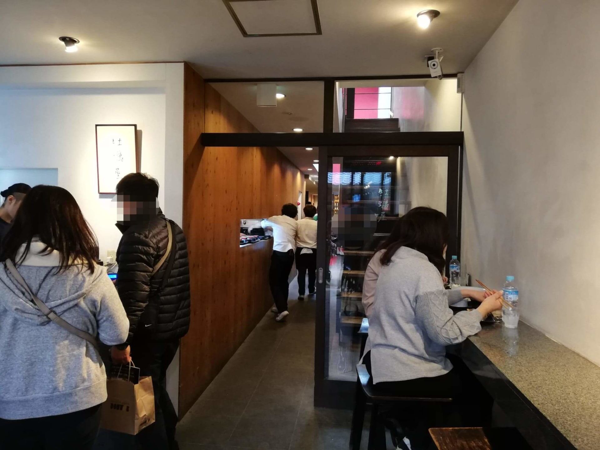 入り口すぐのカウンター席に通されました。この奥や二階にも席があります。しばらくすると、店員さんが奥の席は満席である旨を伝えていました。