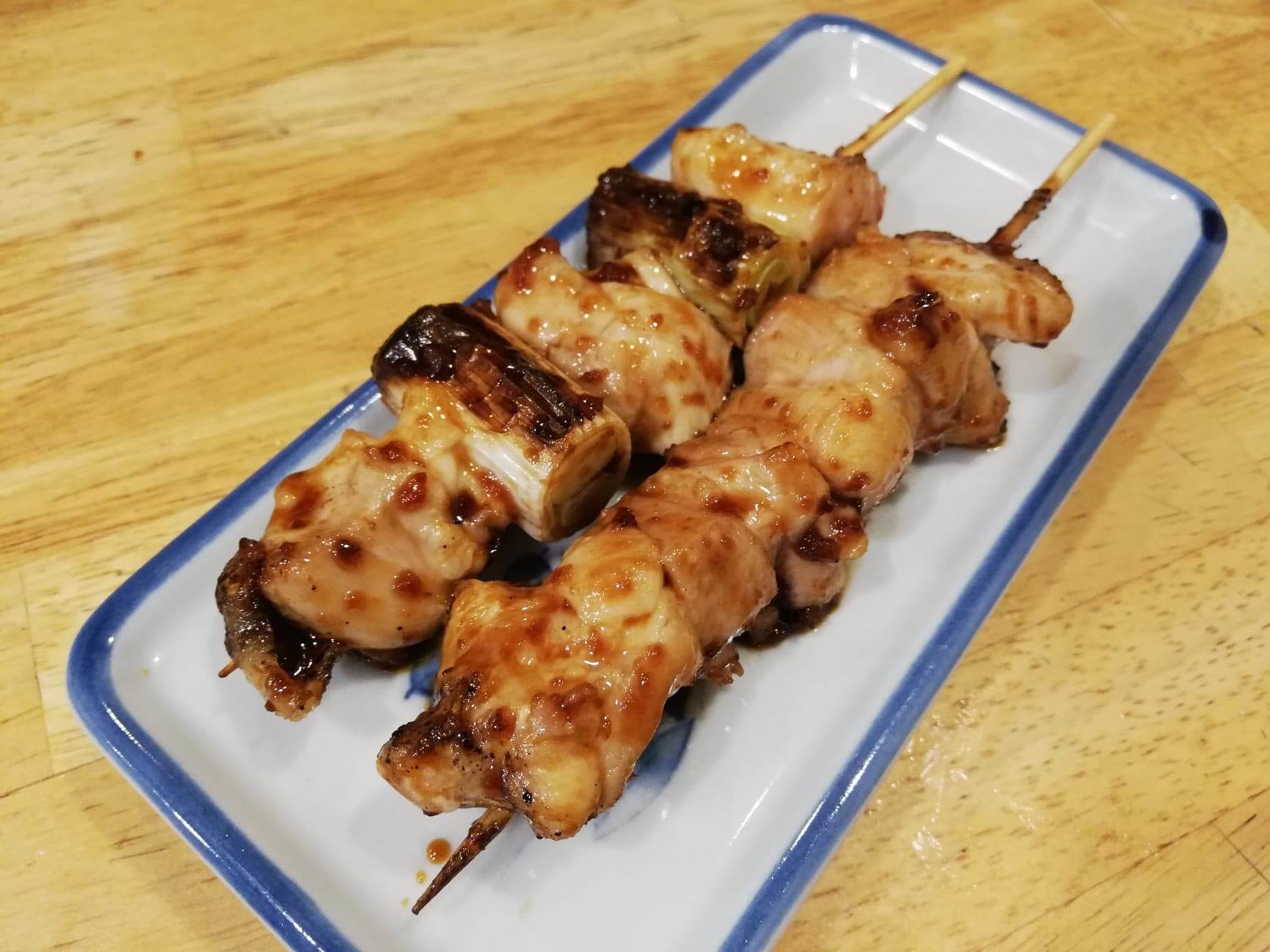 池袋『かぶら屋』のやきとりとネギマの写真最後は再び王道の串で締めましょう。『やきとりのタレ・ネギマのタレ』(各80円) を一本ずつ。