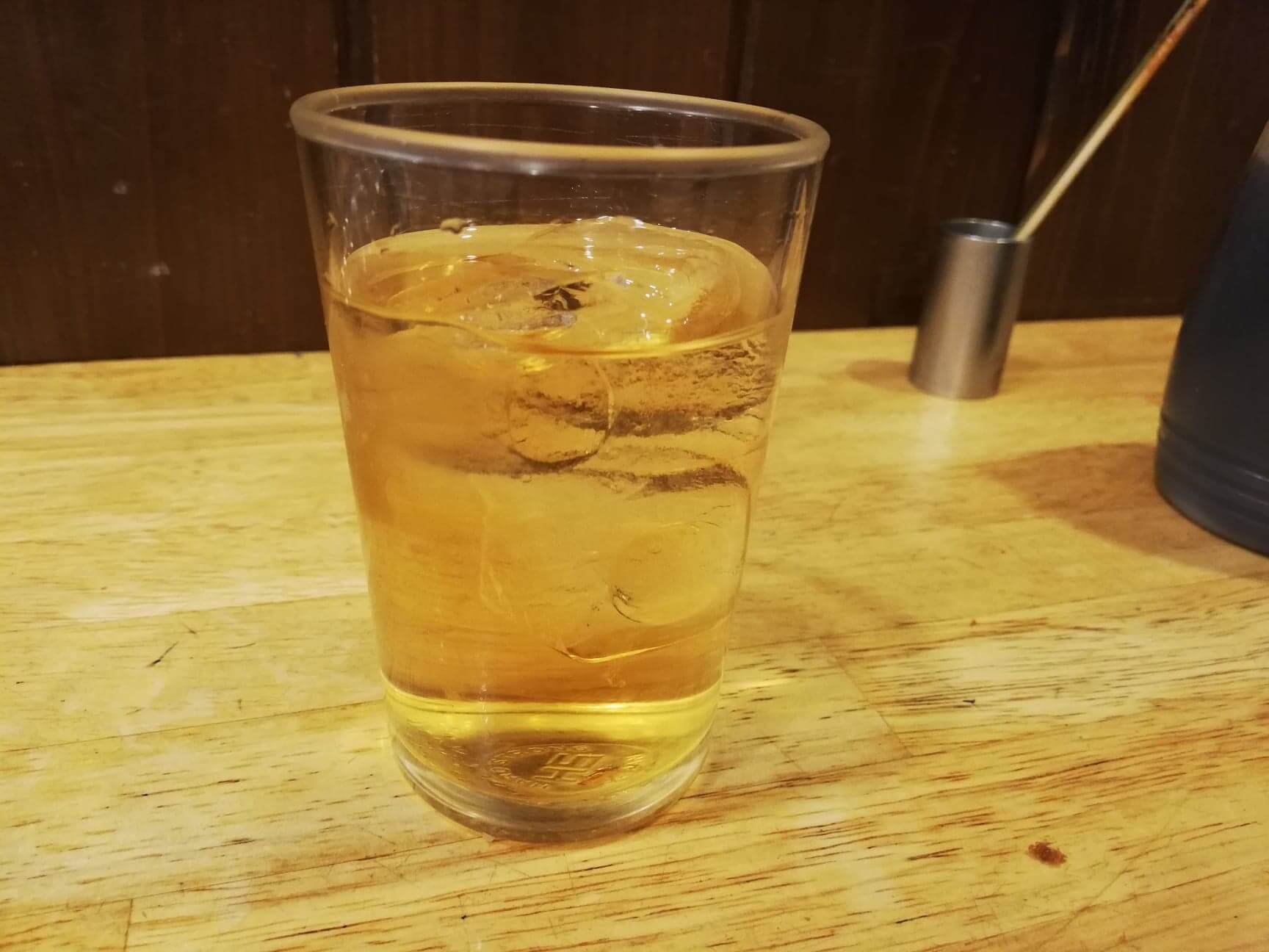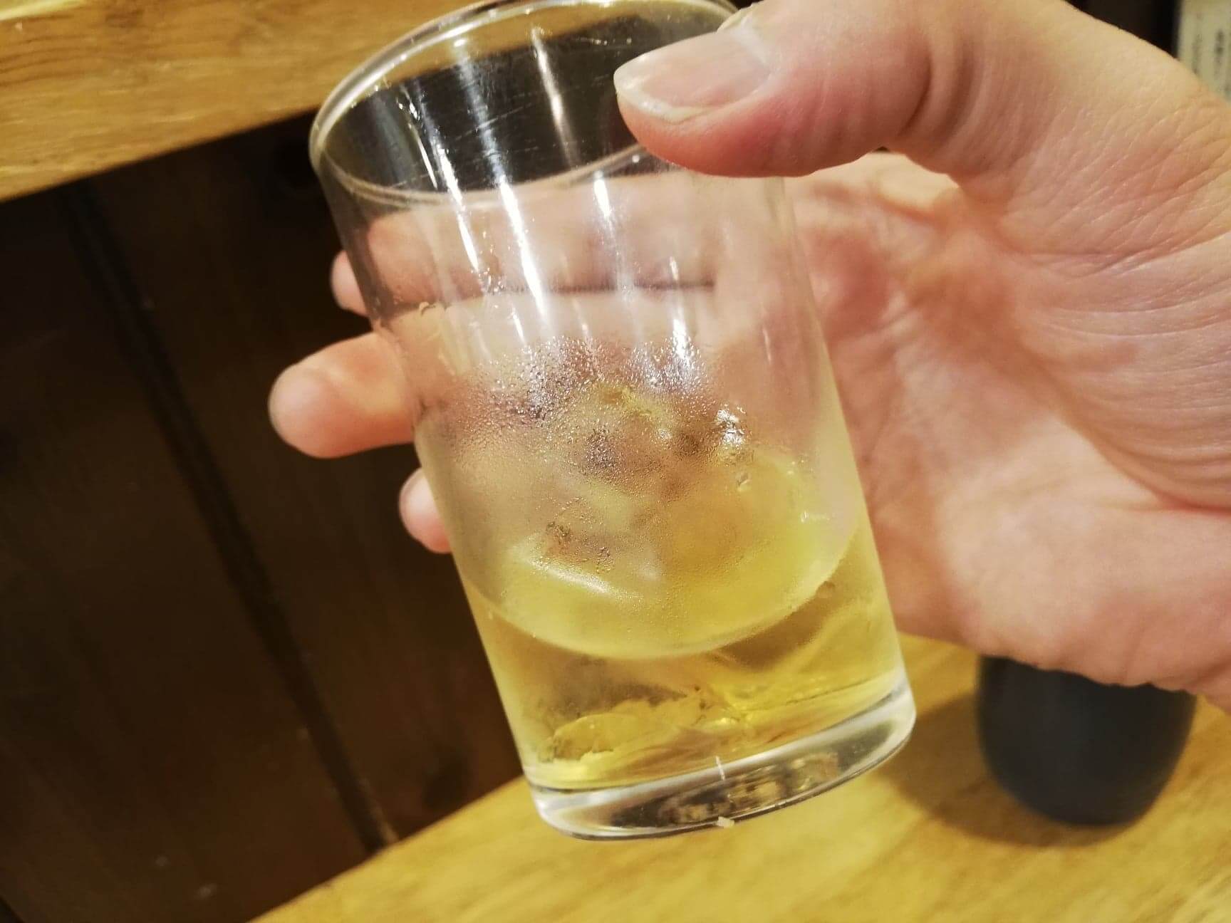 池袋『かぶら屋』の濃醇梅酒ロックの写真あんまい梅酒ロックとも合います。アルコールはそこそこあるクセに飲みやすいのが梅酒の悪いところ。