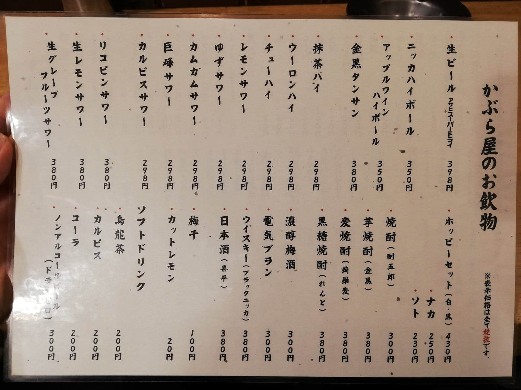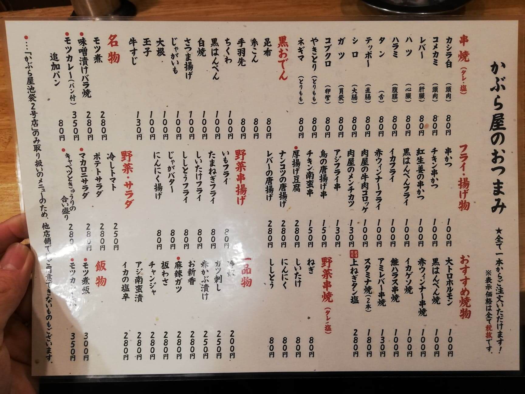 池袋『かぶら屋』のメニュー表写真華金の20時30分というゴールデンタイムにも関わらず待たずに入れました。