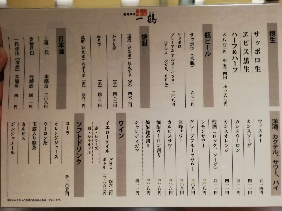 骨付鳥一鶴のメニュー