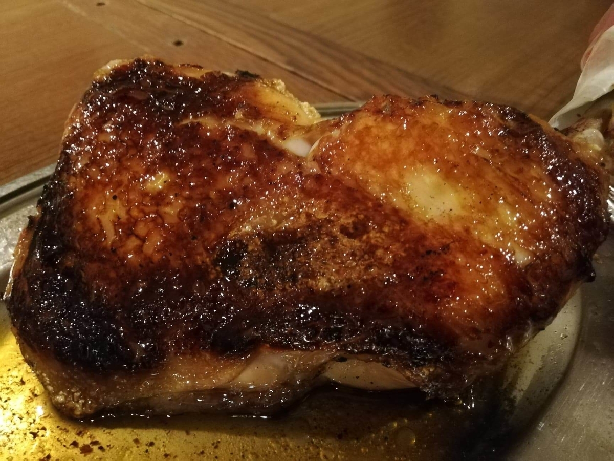 こちらは切り込みがなく、完全なマンガ肉。表にはスパイスがたっぷり。