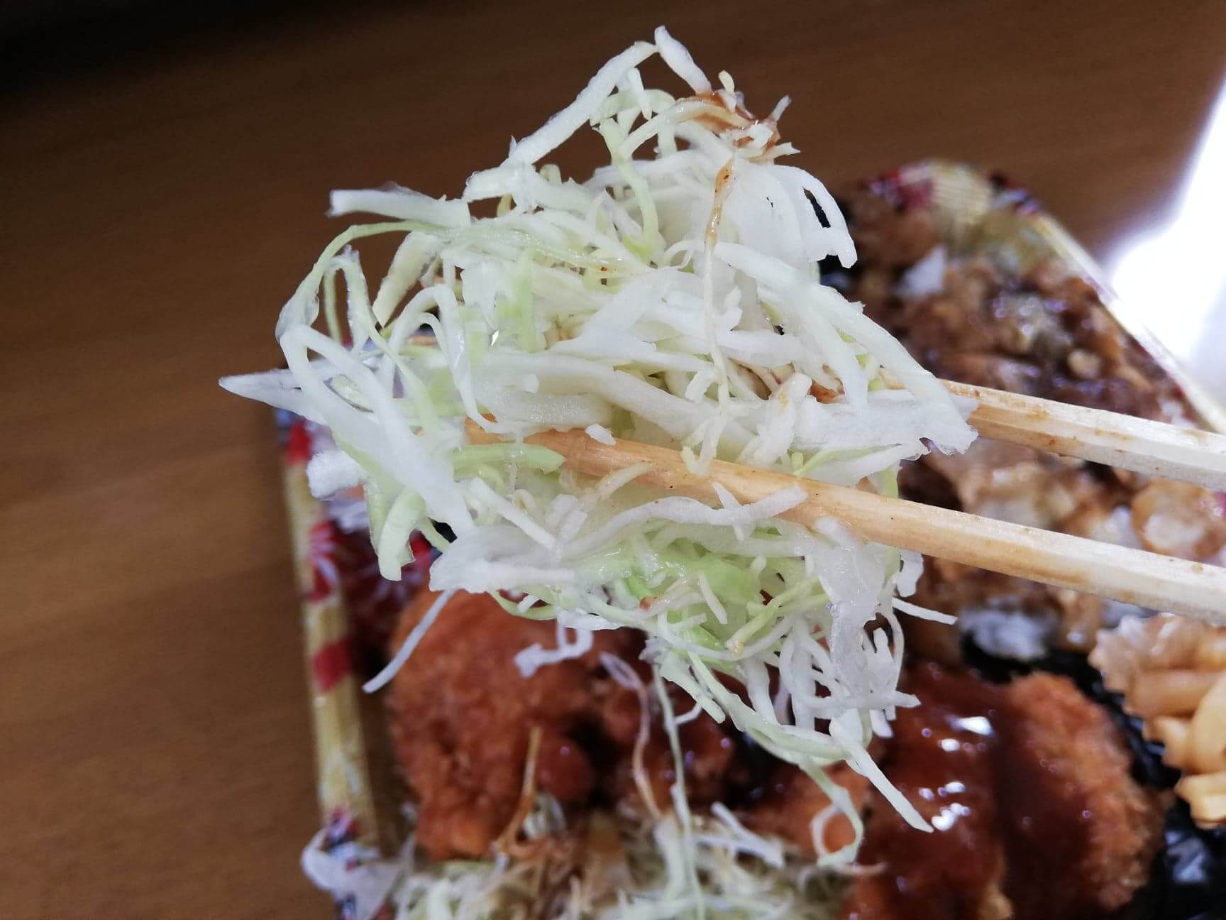 揚げ物だらけの弁当で数少ない良心である、キャベツ。