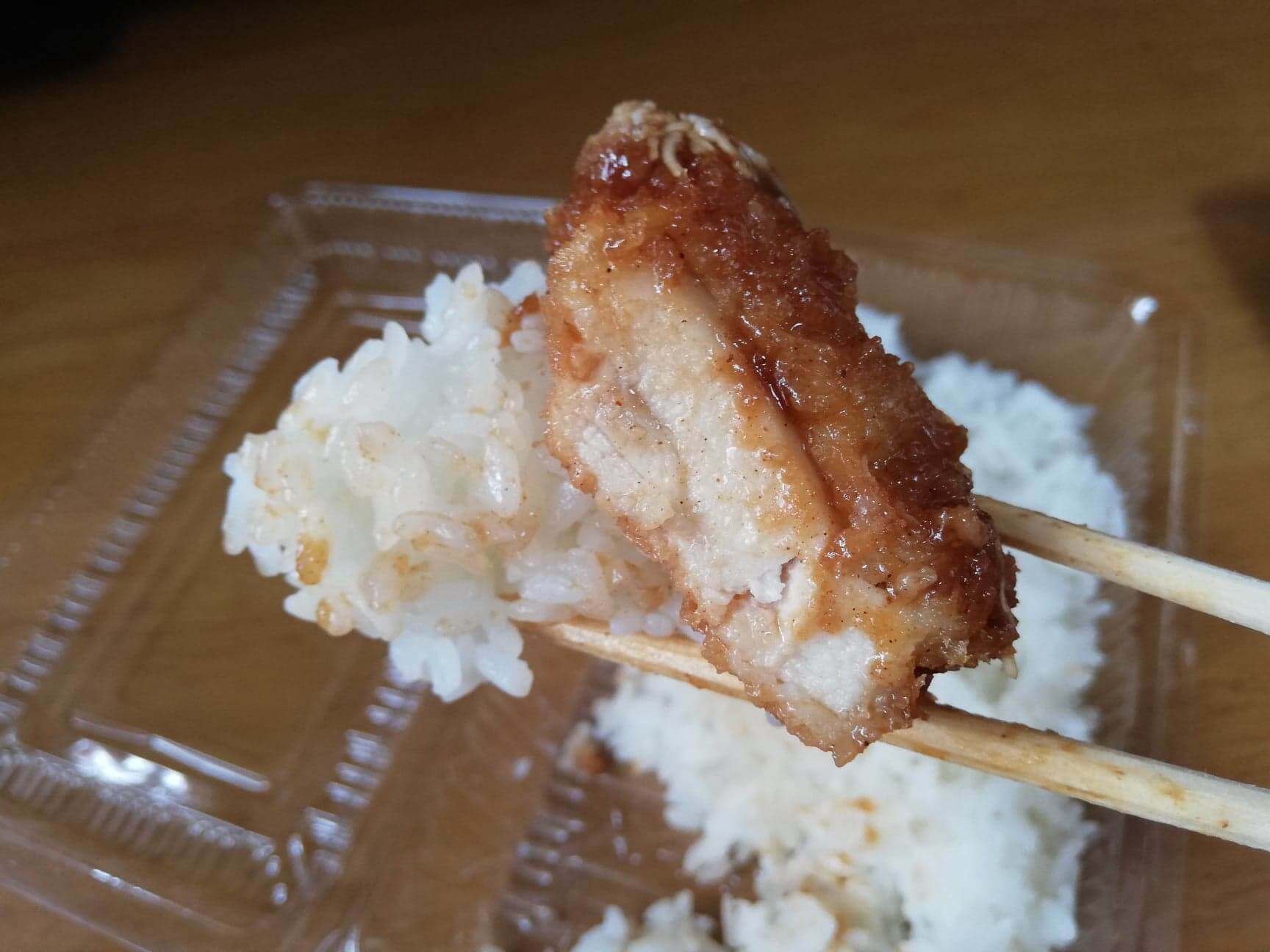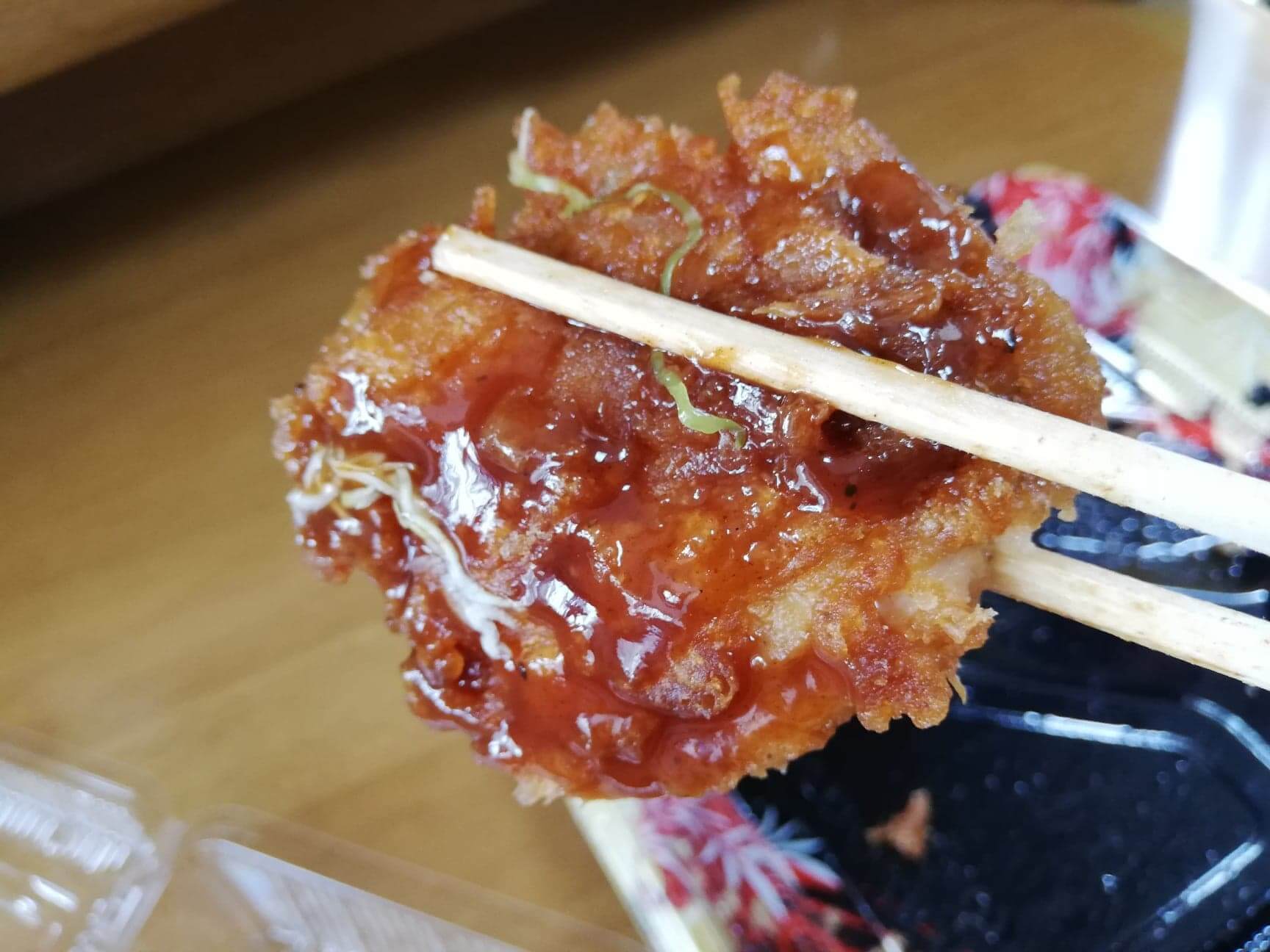 ソースとベチャめの衣が白米とすんげえ合うんですわ!これは是非とも追加の白米も食べてほしい。