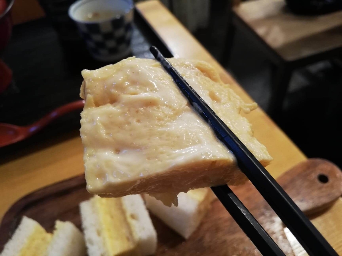 個体のはずなのですが、液体のようにふわっと消えるようにとろける卵!かるーく舌でかき回すだけで空気と同化するように消えていきます。