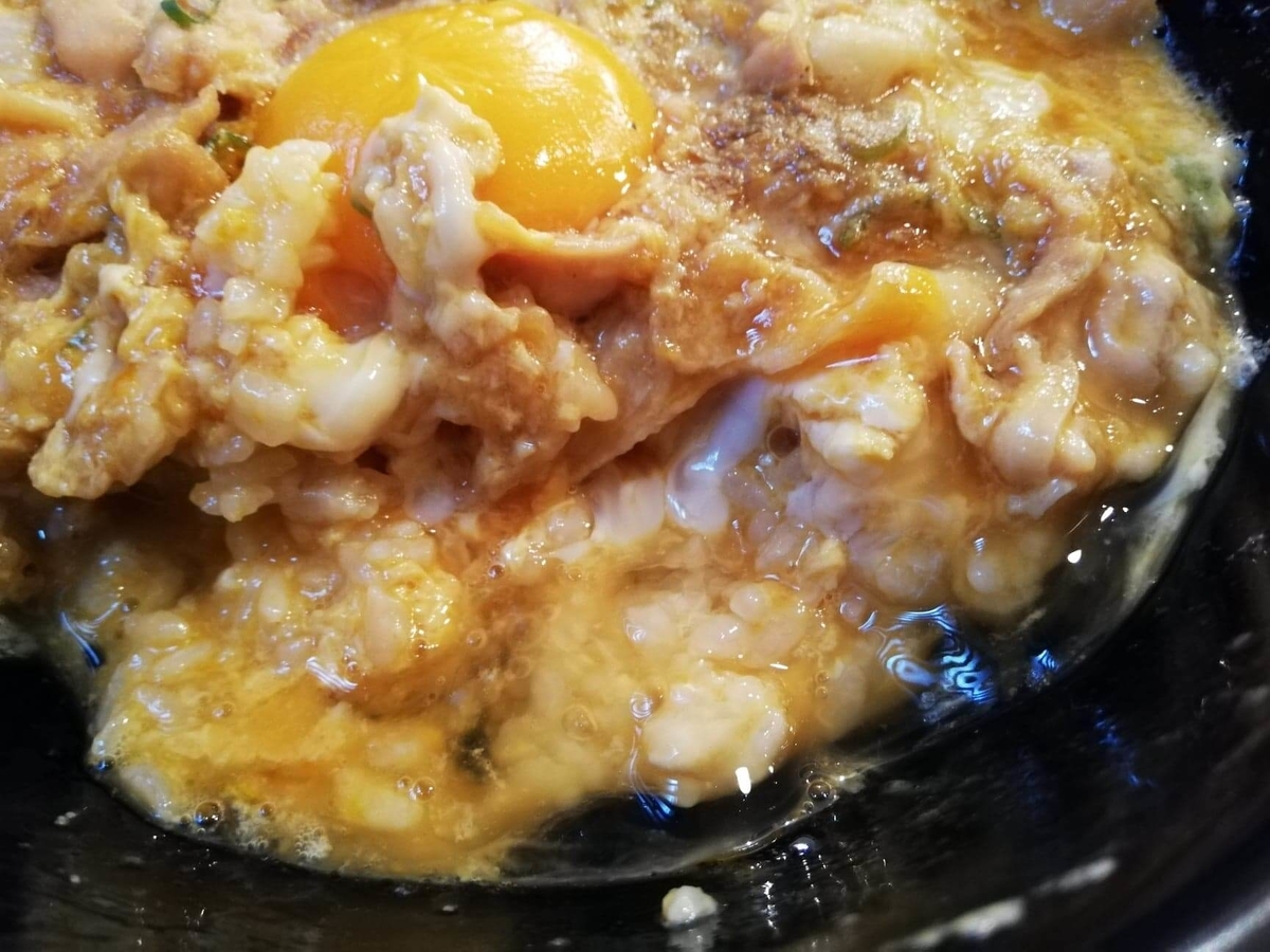 ところどころ生感が残る卵、そしてお肉がたっぷりと敷き詰められています。