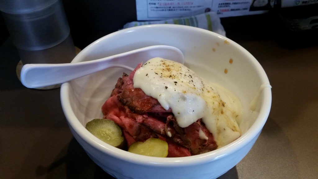 ということでクーポンを使って食べてきました!3月4,5日限定のクーポンで、普段880円(並盛)のローストビーフ丼が同じ値段で肉が倍・・・・・・!さらにごはんの大盛り無料・・・・・・!まさに、さらに倍・・・・・・!