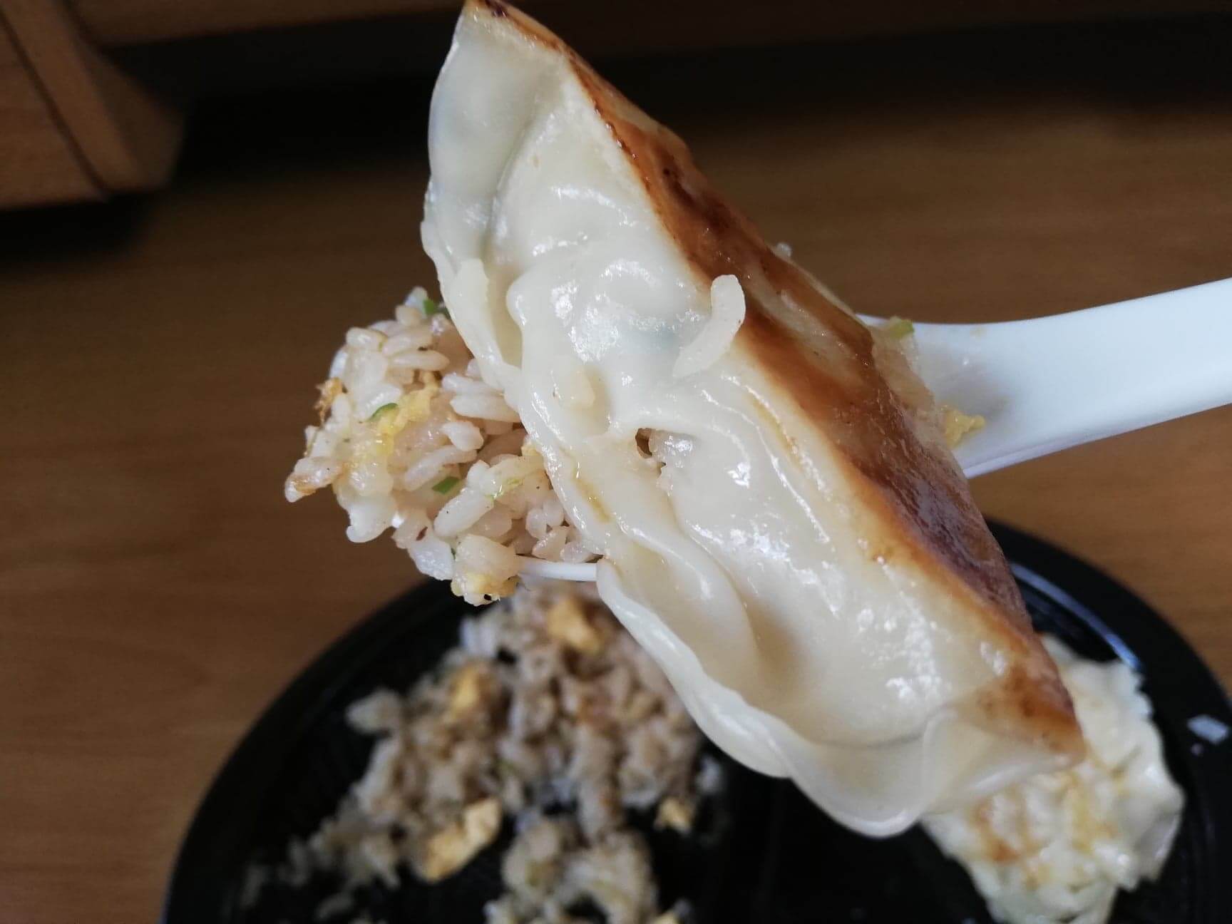 餃子が一口サイズなのと、パラパラチャーハンのほどよい濃さで無限に食えそう。