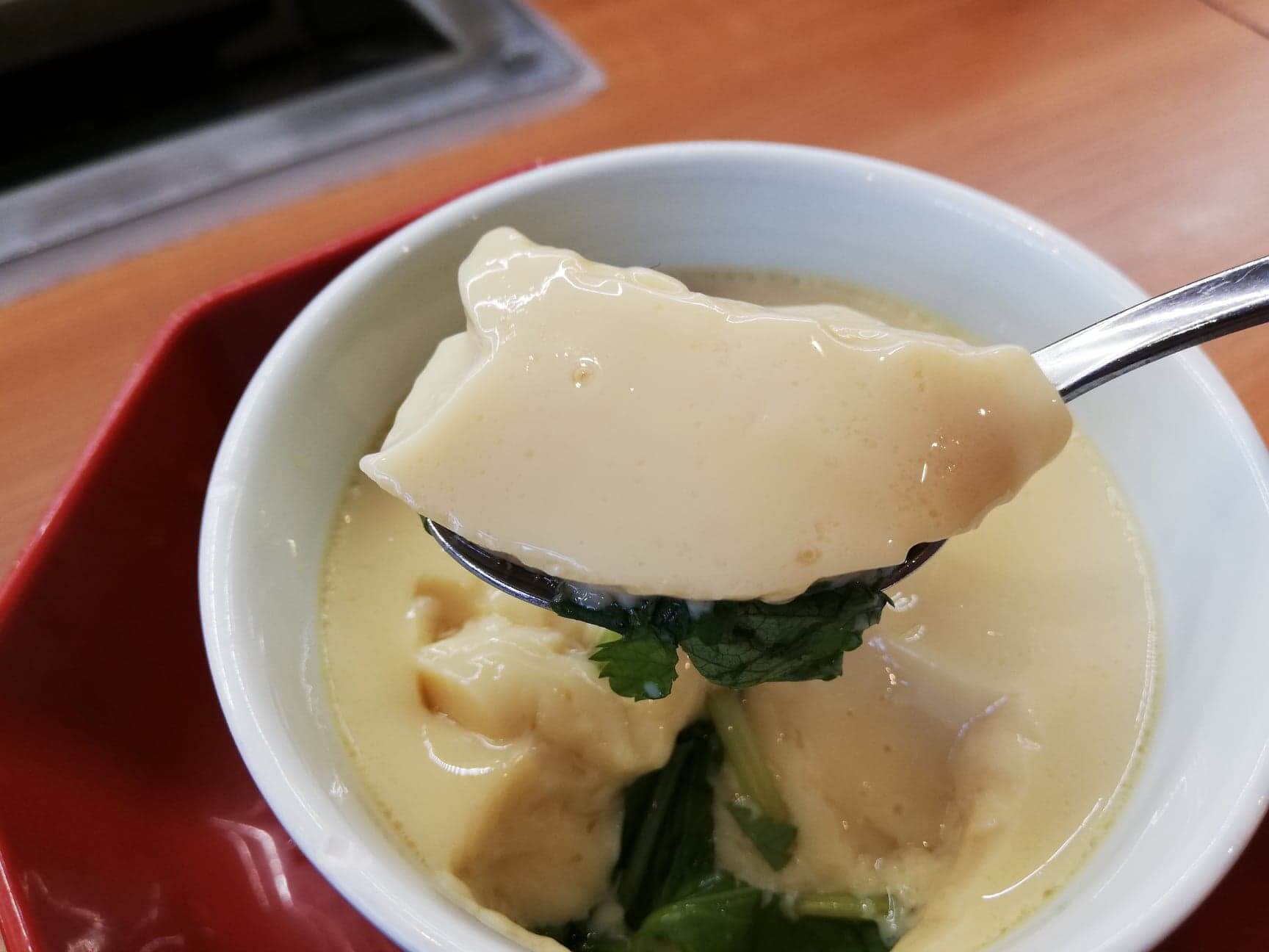 くら寿司の茶碗蒸しの写真 くら寿司の茶碗蒸しをスプーンで持ち上げた写真くら寿司の茶碗蒸しが旨いのは知ってる。