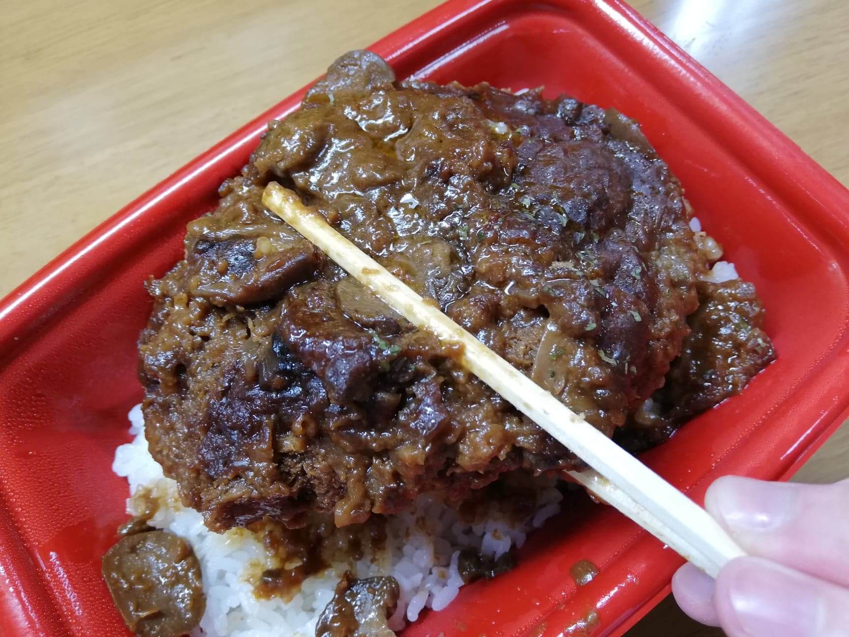 持ち上げるとわかるんですが、ハンバーグがかなりずっしり!すげえ重いです。