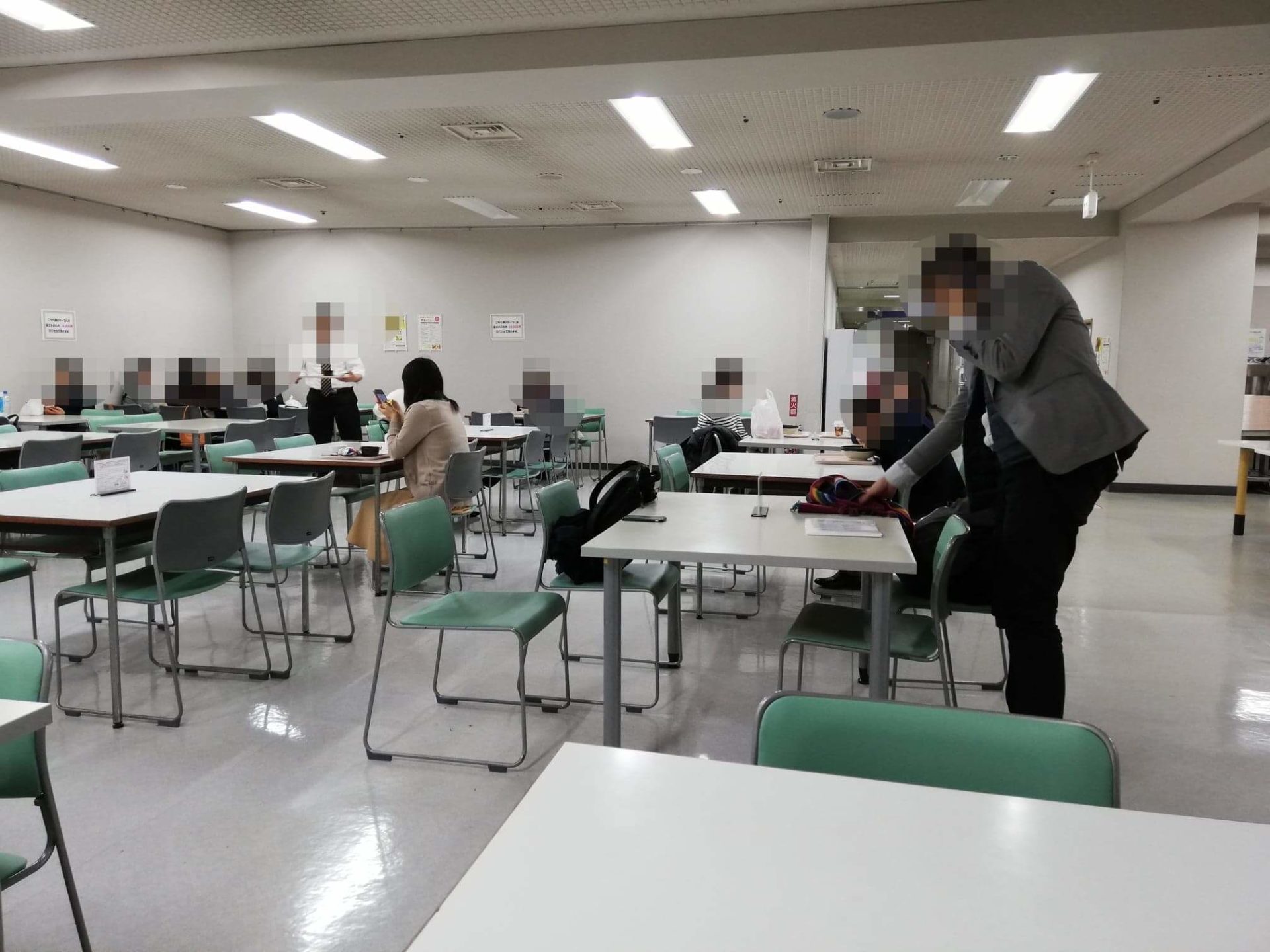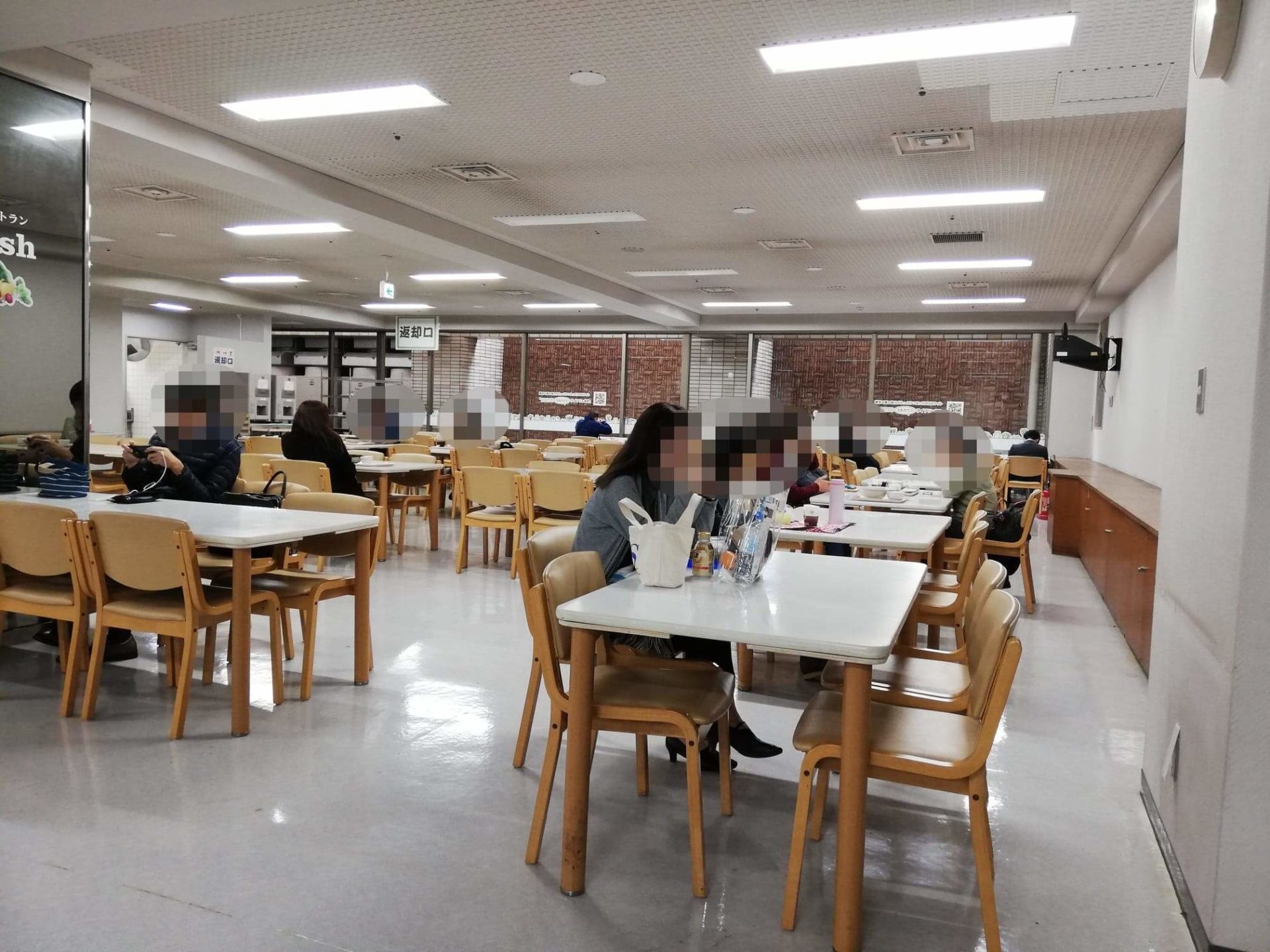 食堂は広いホールのような感じ。金曜の13時30分頃ですが、ちらほら人がいますね。