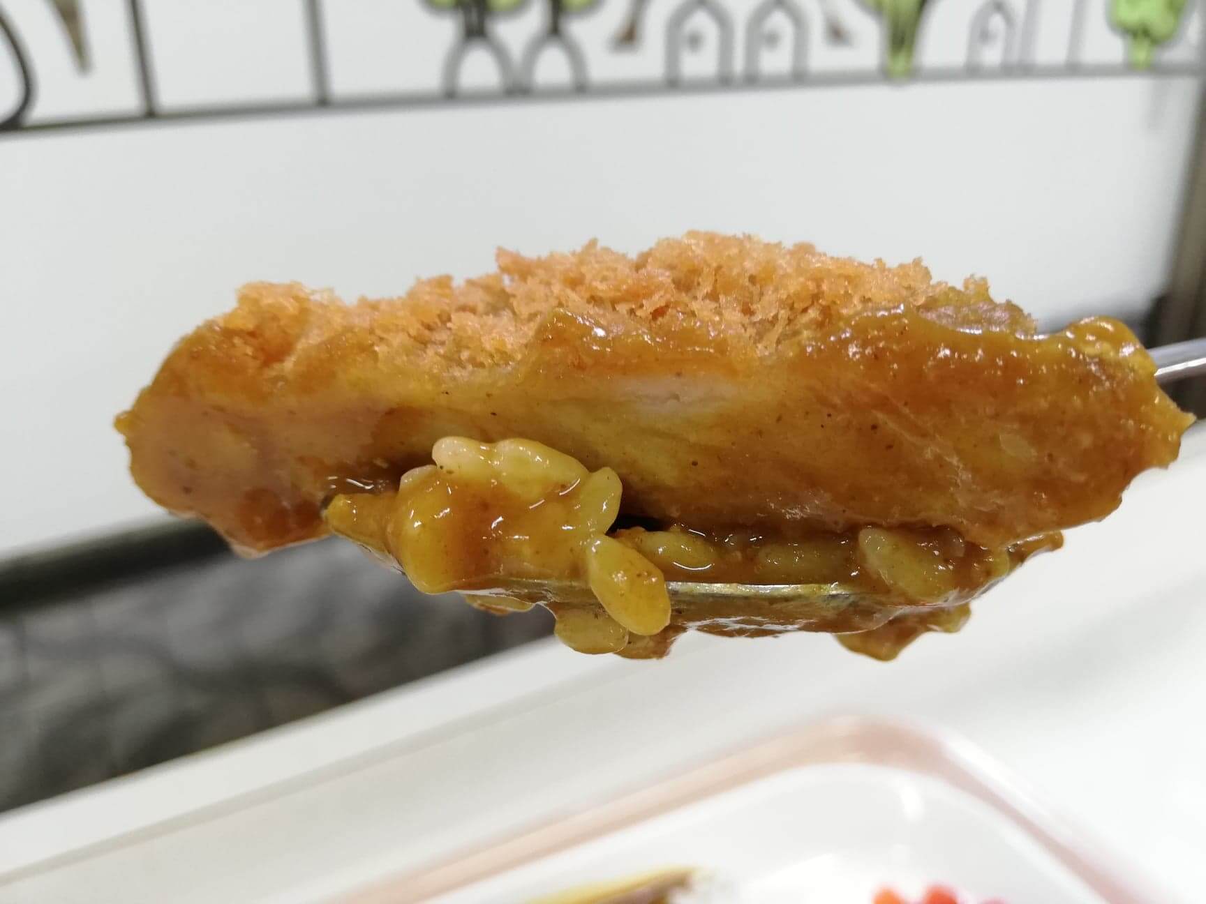 器がデカいのでサイズ感覚がバグりますが、カツも一般的な大きさです。これマジでやばいな!