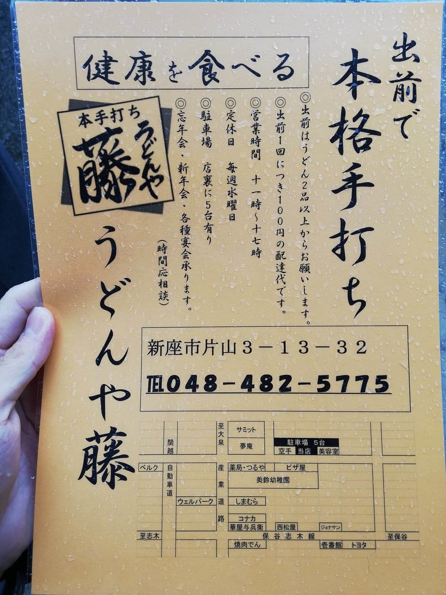 今回訪れたのは、新座市片山という超マイナー地域にある『うどんや藤』というお店!最寄りの西武池袋線保谷駅からは徒歩10分くらいかかります。