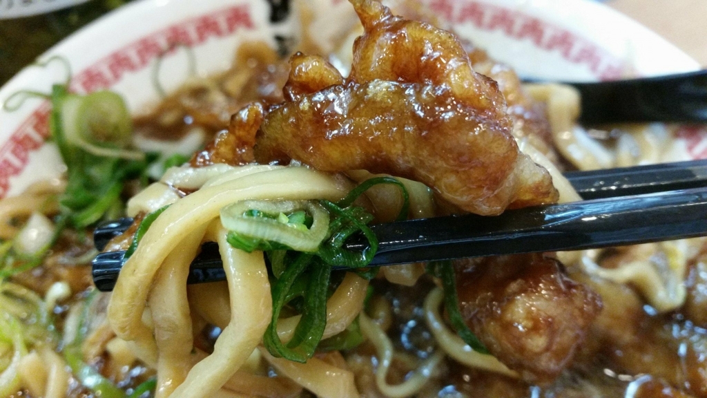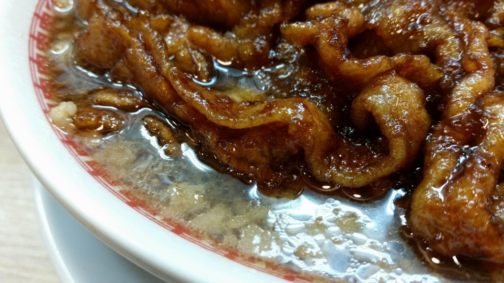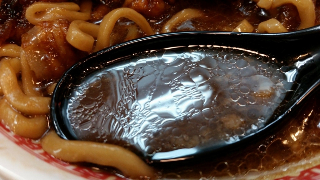そしてこのスープがね、濃い。すんごい濃い。醤油の味に肉の脂が溶け出ししょっぱさに近いかなりの濃さになっています。これは全部飲み干したらやばいなw