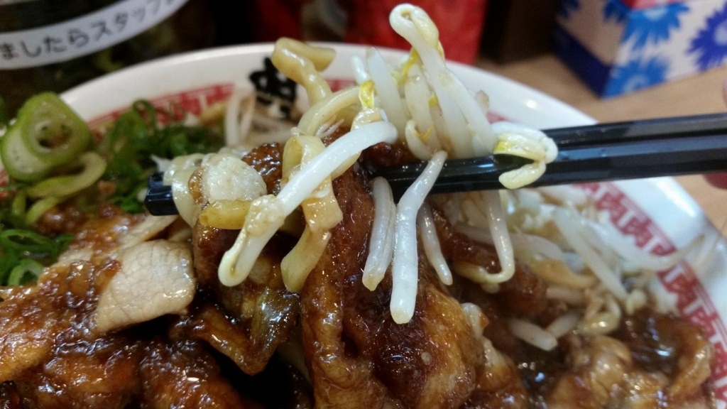 唯一健康への良心はもやしのみwスープのドロドロさに負けずシャキシャキな歯ごたえを保ってくれています!