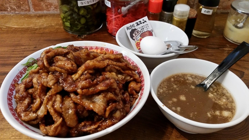 値段は違えど白米か麺かを選べるのであなたの好みでいただきましょう。あまりに胃もたれしちゃう体質とかの人は肉汁丼がオススメ。スープがあると味の濃さにおそらくへこたれるのでw