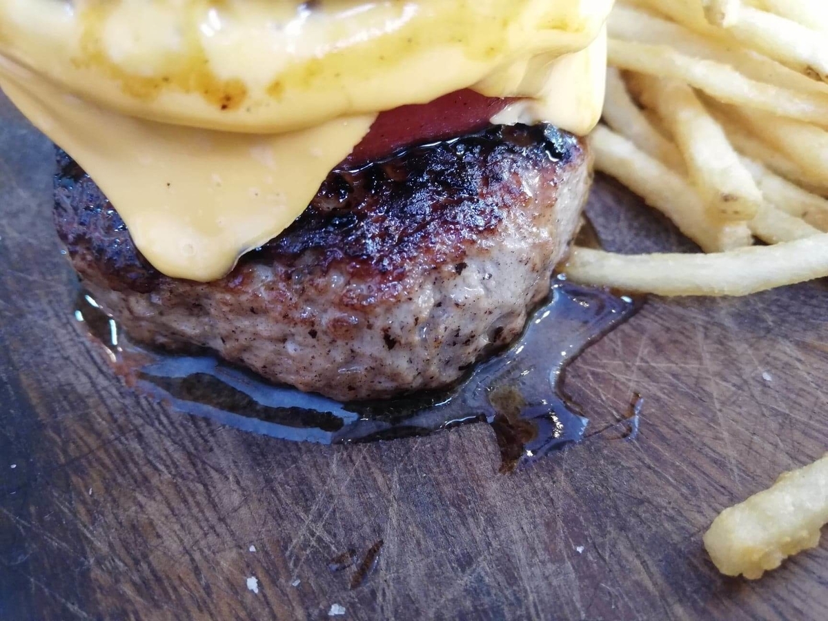 三軒茶屋『CAFE HOME MADE(カフェホームメイド)』のワイルドビーフRの油の写真この分厚い中にはたっぷりの油が含まれています。これがまた良質なんですわ!