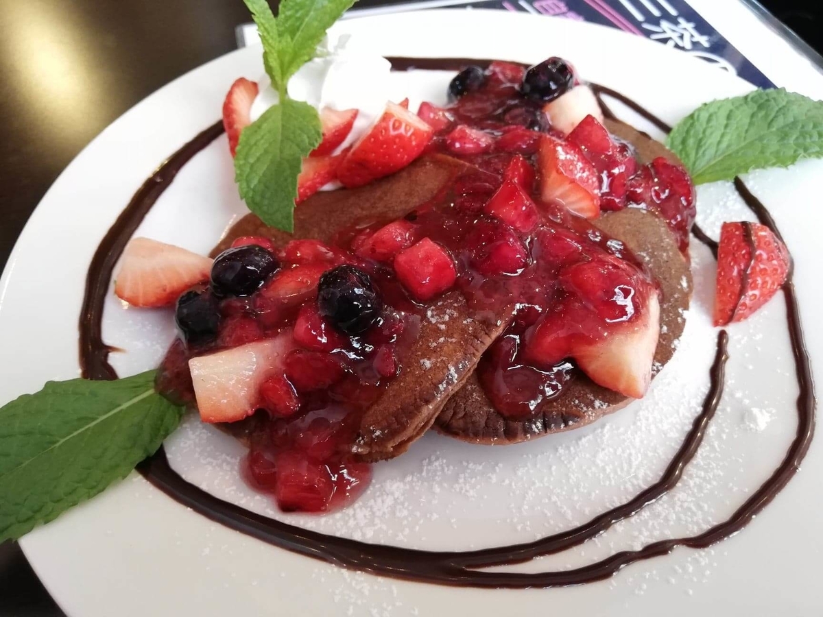 これは完全に可愛らしい見た目。パンケーキの上にキラキラっとしたベリーがたっぷりと!